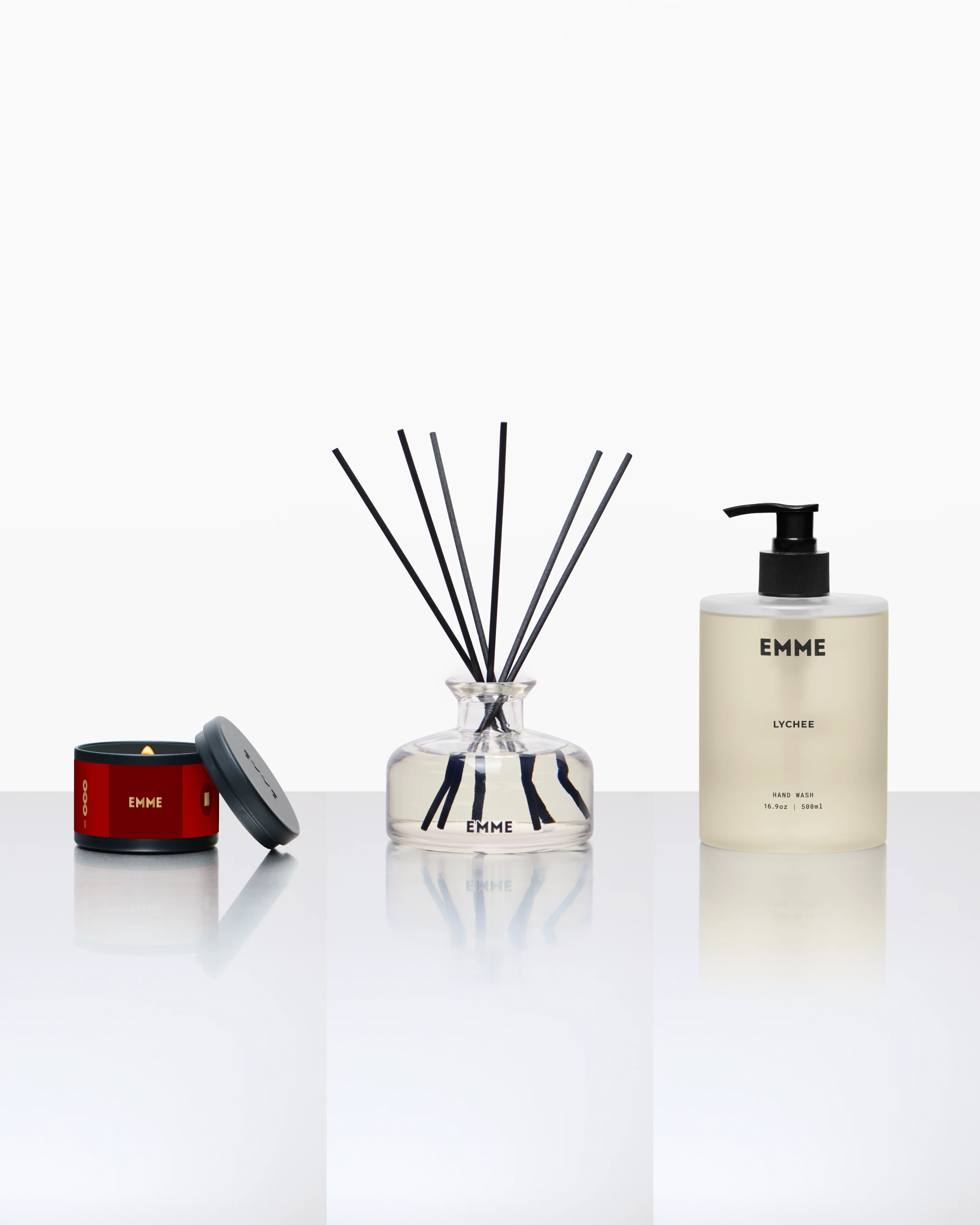 Discover the EMME Starter Pack: your perfect introduction to elevated home rituals. This curated trio includes one of our signature hand washes, a reed diffuser, and a candle tin, a complete sensory set designed to transform your everyday spaces. Thoughtfully formulated with non-toxic, skin-safe ingredients and crafted with premium fragrance oils, each piece brings effortless beauty and lasting aroma to your home. Ideal for gifting or treating yourself.
